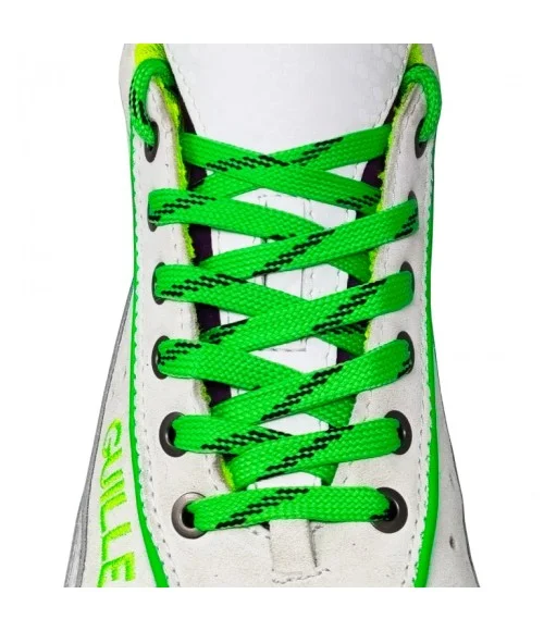 Pels que no volen passar desapercebuts: parell cordons Etisport per a Hoquei patins groc fluor amb pintes negres. Un extra de color i personalitat sense comprometre el joc.