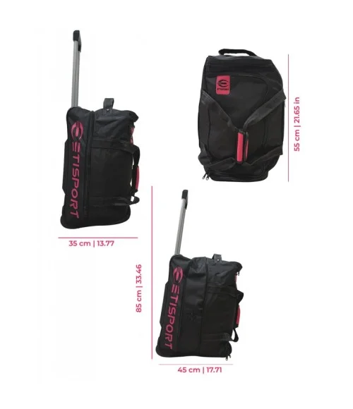 Trolley jugador Etisport 3 Rodes 60cm en negre amb detalls en fúcsia. Disseny resistent, gran capacitat i un estil modern i juvenil. Perfecte per a destacar mentre portes el teu equipament amb total comoditat.