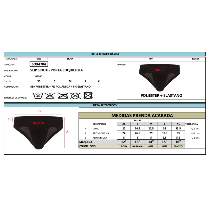 L'slip Sioux, amb costures planes, ofereix un ajust perfecte i llibertat de moviment. Està fabricat amb Tecnologia Droyland, un sistema que manté la pell seca i fresca, a més de ser antibacterià i antial·lèrgies.
