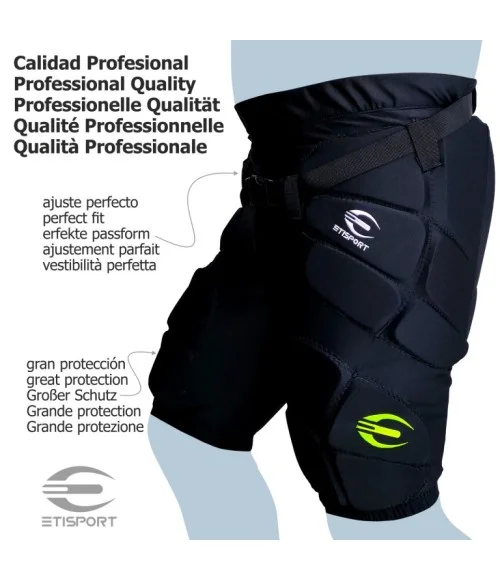 Pantalón Etisport protectores interiores acolchados Talla - S diseñados para el alto rendimiento, protegen zonas clave como piernas, caderas y coxis sin limitar el movimiento. Ajuste perfecto, materiales de calidad y comodidad garantizada. Disponibles en tallas S a XL.